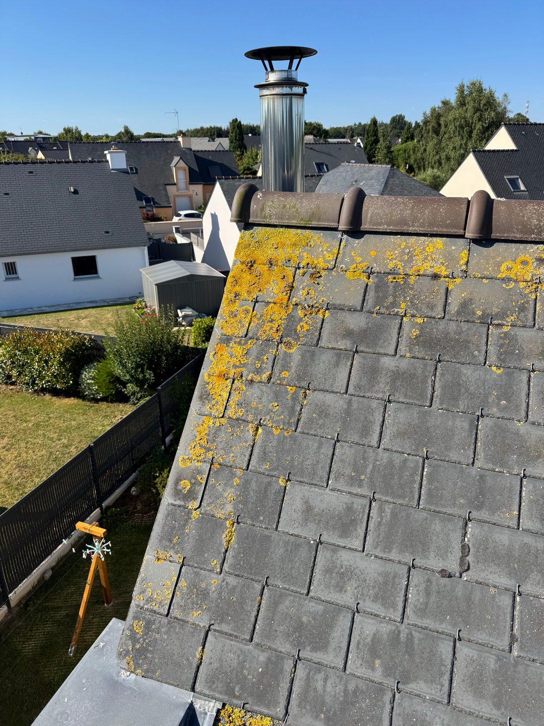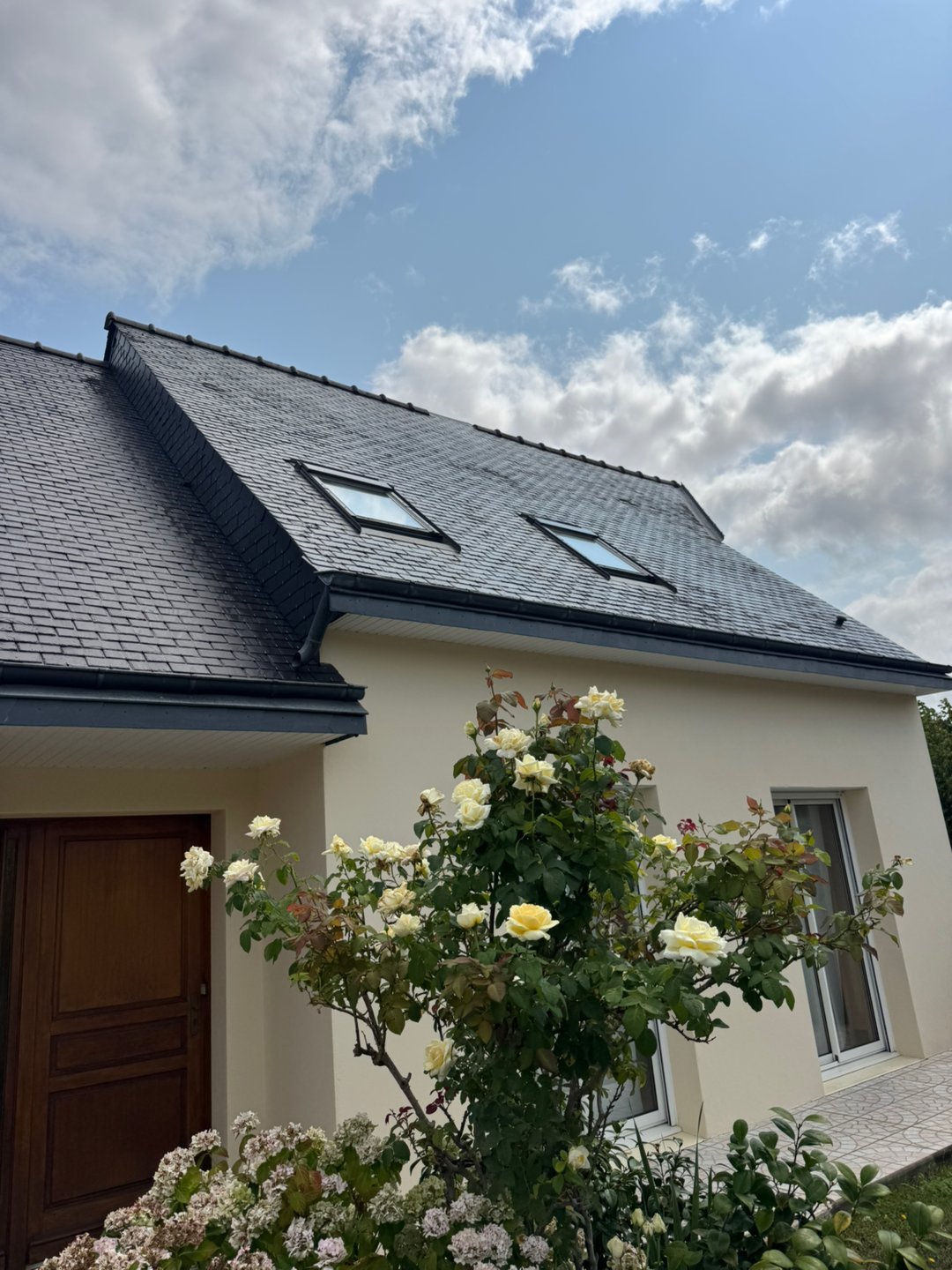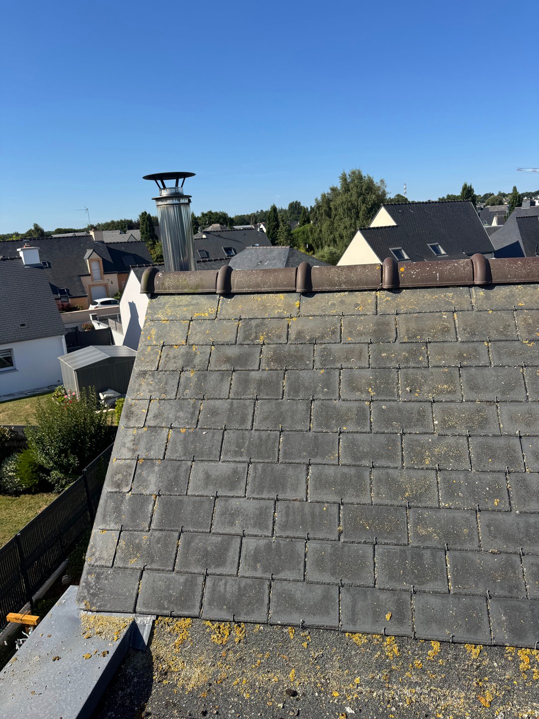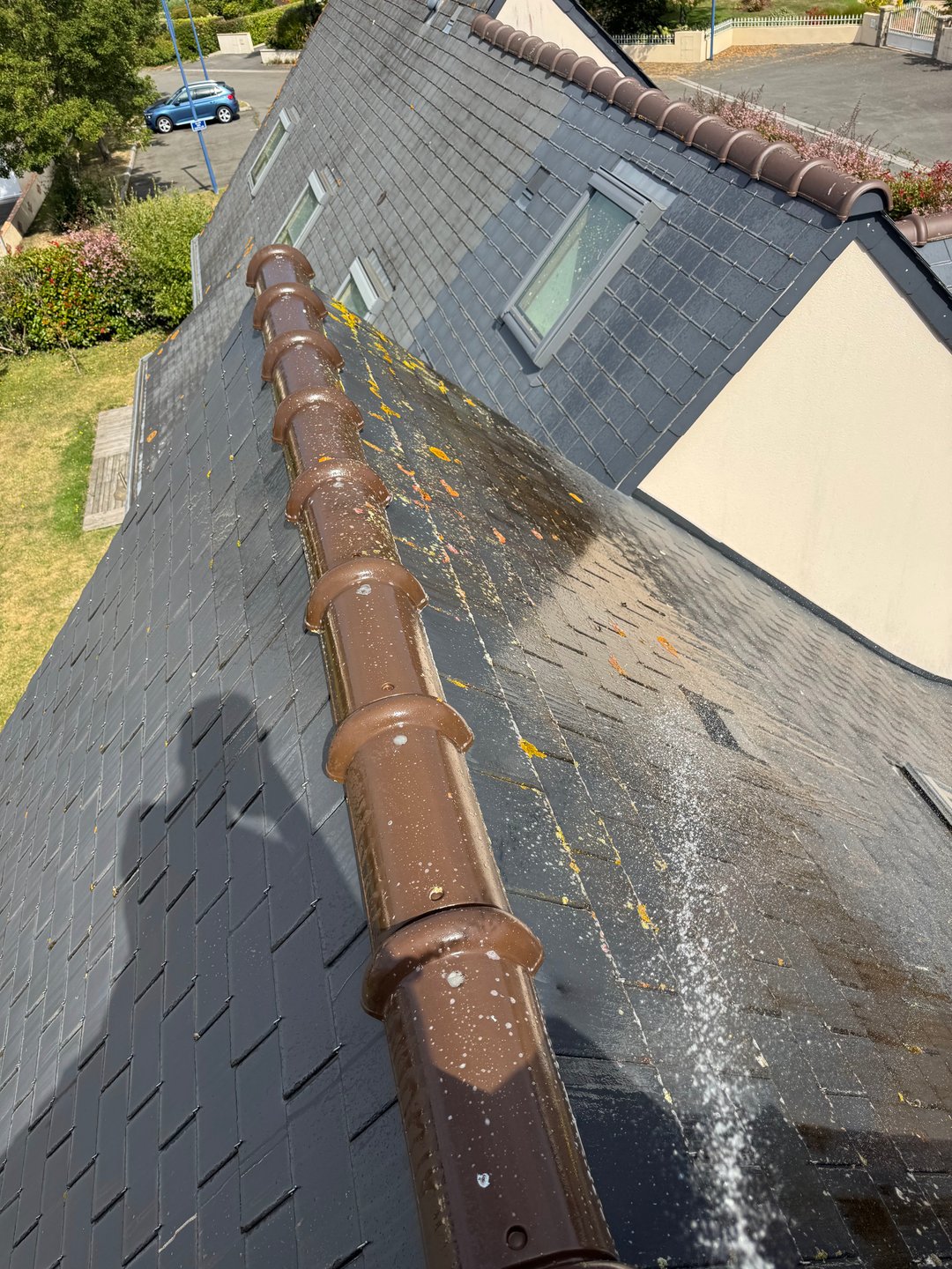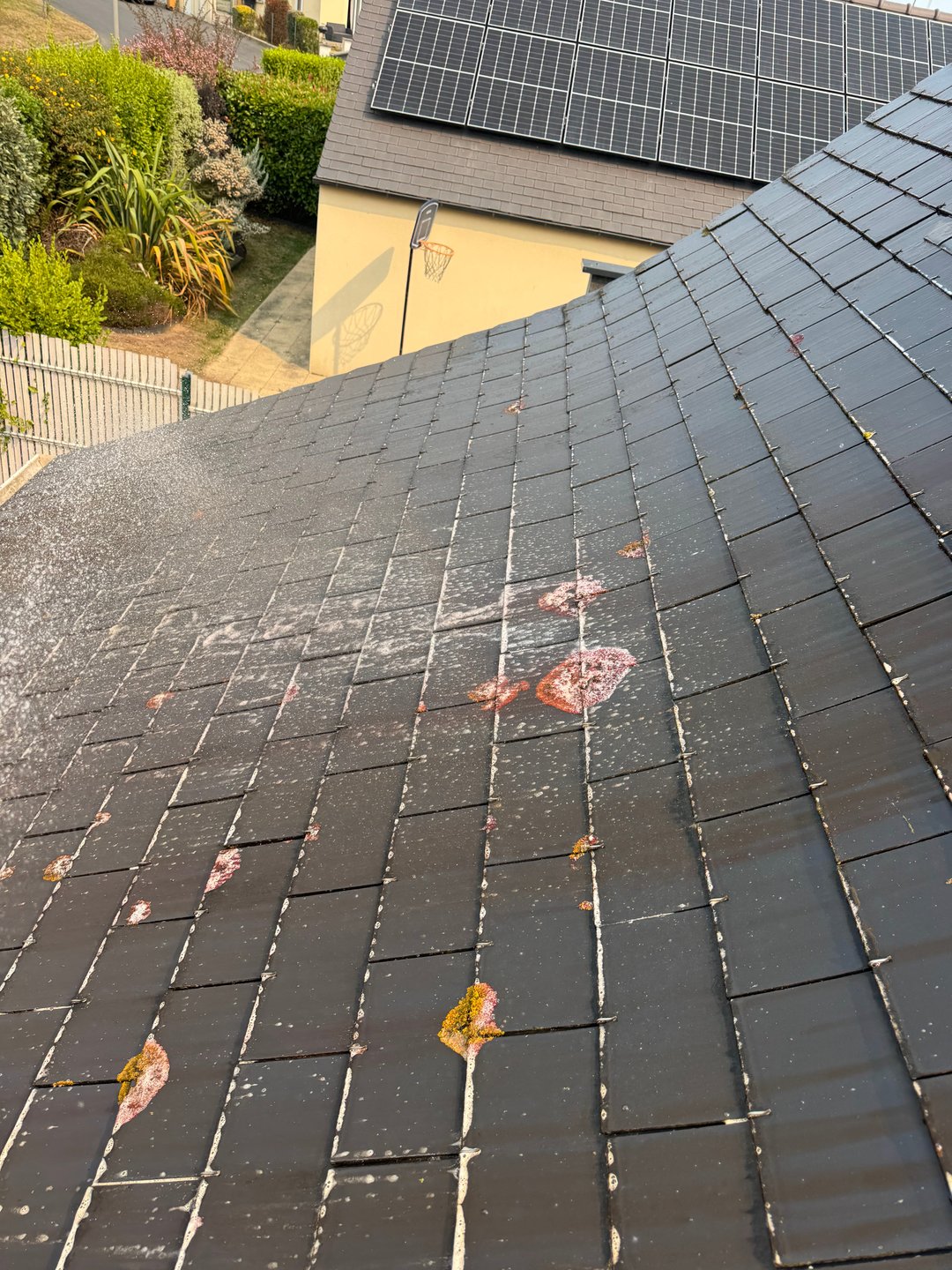Démoussage + traitement d’une jolie toiture en ardoise avec anti mousse professionnel profitez des beau jour pour nettoyer votre toiture,
